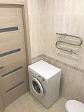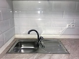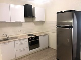Частичная меблировка: установлен кухонный гарнитур, мягкий диван, обеденный стол, стеллаж под телевизор. Ванная комната полностью укомплектована сантехническим оборудованием.