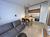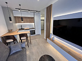 Квартира премиум-класса, общей площадью 40м2, расположена в комплексе бизнес-класса и предлагает роскошь, комфорт и прекрасные виды на горы и море. Входя в квартиру, вы встретите просторную гостиную с элегантной мебелью и стильным декором. Она станет идеальным местом для отдыха, развлечений и приятных вечеров с друзьями и семьей.