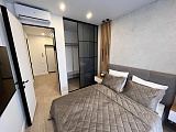 Все комнаты квартиры выполнены с использованием дорогих отделочных материалов и современных технологий. Пространство оформлено в сдержанных тонах, создавая атмосферу уюта и комфорта.