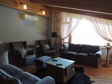 Площадь квартиры составляет 130м2. Количество изолированных комнат – 3. Просторная кухня, объединена со столовой позволяет принимать большое количество гостей. Из комнат есть выходы на открытые балконы, с которых открываются завораживающий вид на величественные горы! Интерьер выполнен в духе современного кантри. Есть абсолютно вся мебель и бытовая техника. Обилие элементов из дерева, а также тщательно подобранный домашний текстиль делают эту квартиру очень уютной. Переступив ее порог, Вам вряд ли захочется покидать ее!