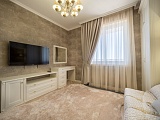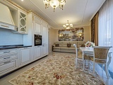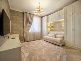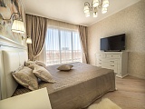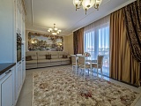 Интерьер квартиры, выполненный в лучших традициях элегантного современного классицизма, ненавязчиво подчеркнёт Ваше безупречное чувство вкуса и стремление к прекрасному во всем. Установлена дорогостоящая мебель из коллекций ведущих фабрик-производителей, новая бытовая техника. Светло-бежевая палитра красок, которой дизайнеры отведи главенствующую роль в оформлении, наполняет эту квартиру неподдельным уютом и теплотой. Отличным дополнением общей картины служит грамотно подобранный текстиль и декоративные элементы. Из окон, за счет высокого этажа, открывается очень красивый вид на исторический центр Сочи и главные его достопримечательности.