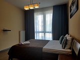 Жилое помещение представлено в стильном дизайнерском оформлении с современным ремонтом. Апартаменты полностью укомплектованы всей необходимой мебелью и техникой.