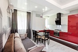 Квартира представлена к продаже вместе со всей мебелью и бытовой техникой. Этот факт позволяет отметить новоселье сразу после покупки. Порадует и качество произведенного в ней ремонта. В кухне-гостиной, спальне, санузле, коридоре проложены теплые полы и обеспечена прекрасная изоляция от постороннего шума.