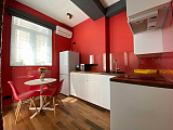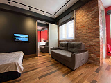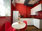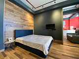 Уютный интерьер продуман до мелочей и готов к заселению: здесь есть уютный уголок для отдыха с возможностью организовать дополнительное спальное место, оборудованная кухня со всей необходимой бытовой техникой, вместительные шкафы и современное мультимедийное оборудование. В квартире установлена эффективная система кондиционирования, имеется стиральная машина и всё нужное для проживания.