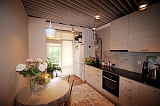 Площадь квартиры 50 кв м, располагается на втором этаже. Дизайн выполнен в стиле «Лофт», оригинально подобраны элементы декора. Квартира имеет выход на открытый балкон, с которого открывается красивый вид на горы.
