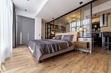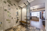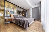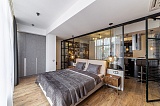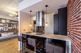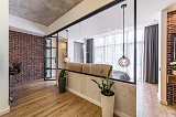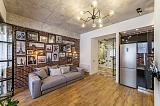 В основе оформления интерьера квартиры – ультрамодный и популярный лофт-стиль, отличающийся продуманностью деталей. Дизайнеры продумали каждую мелочь, начиная от выбора отделочных материалов и заканчивая текстилем, фурнитурой, декоративными элементами.