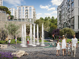 На территории комплекса есть все необходимое для комфортного проживания и отдыха. Здесь вы найдете открытый бассейн, оливковый сад, мини-гольф, детские и спортивные площадки, фонтаны, зону Work out, открытый кинотеатр и скейт-парк для детей.