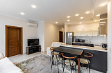 Общая площадь представленной квартиры составляет 84 квадратных метра. Внутри выделено 3 изолированных спальных комнаты, большая кухня-гостиная. Все комнаты очень просторные и светлые! Также очень важен тот факт, что дополнительных вложений в обустройство пространства данная квартира не требует. Внутри выполнен дорогостоящий ремонт, который покоряет не только визуальной эстетикой, но и безупречным качеством.
