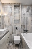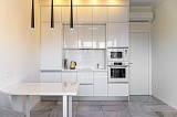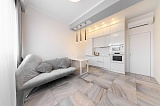 В жилом комплексе Посейдон продается однокомнатная квартира с шикарным дизайнерским ремонтом. Вид на реку Псахе и частично на море. Распланирована в одну спальную комнату с балконом и просторную кухню-гостиную. В отделке квартиры использованы материалы премиум-класса: керамогранит и обои Roberto Cavalli, паркетная доска, итальянские двери, камин Dimplex, душевая стояка Handgrohe, унитаз, ванна Villeroy&Boh, кухня и встроенные шкафы Лорена, столешница с интегрированной мойкой-искусственный камень, диван итальянской марки Bolando, потолочные светильники Mantra. Эта квартира будет радовать Вас как во время отдыха в сезон, так и в межсезонье, она создана для красоты и уюта.