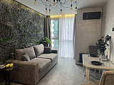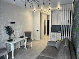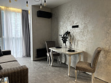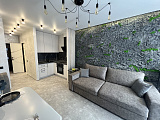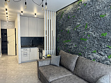 В студии выполнен свежий ремонт высокого качества, который также может похвастаться визуальной эстетикой. Квартира продается полностью меблированной, со всей необходимой бытовой техникой, поэтому новоселье можно будет отпраздновать сразу же после покупки. Интерьер оформлен в стиле Loft, что создает особую уютную атмосферу и визуально расширяет пространство. Дополнительным преимуществом является наличие панорамного остекления.