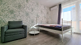 Общая площадь квартиры - 44 квадратных метра. Пространство зонировано студийным образом, что делает это предложение действительно идеальным вариантом для жизни и отдыха. Выделена полноценная зона для отдыха и просторная кухня с гостиной. Отдельный плюс – собственный балкон, с которого открывается потрясающий вид на море и городскую панораму.