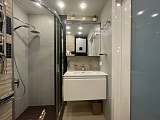 Внутри выполнены все ремонтные работы, а также частичная меблировка пространства. Установлен дорогостоящий кухонный гарнитур, обеденная зона и вся необходимая сантехника. Спальную комнату покупатели смогут укомплектовать по своему личному усмотрению.
