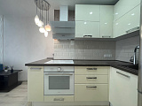 Общая площадь предложения – 40 квадратных метров.  Выделена изолированная спальная комната, а кухня объединена вместе с гостиной. Такое решение делает квартиру весьма комфортным вариантом для единовременного проживания семей из 2-3 человек.