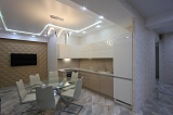 Рады представить Вашему внимание шикарный объект элитной городской недвижимости всесезонного курорта Сочи – просторную трехкомнатную квартиру, расположенную в одном из лучших ЖК города – «Золотой Колос». Несомненно, местоположение объекта – одно из его преимуществ: располагаясь в самом центре курорта, дом находится в нескольких минутах ходьбы не только от исторических и культурных достопримечательностей, знаменитых парков, но и не более чем в десяти минутах от береговой линии с самыми чистыми и благоустроенными пляжами Черного моря. Кроме того, сама квартира – площадью 85м2 – имеет удачную планировку: 2 независимых спальных комнаты, просторную гостиную с отдельной обеденной зоной и кухней, совмещенный санузел. Во всем помещении выполнен великолепный дизайнерский ремонт в легких светлых тонах, что наполняет каждую комнату еще большим простором. Шикарная мебель и современное техническое оснащение добавляют квартире не только эргономичности, но и максимально удачно дополняют общий интерьер, выдержанный в одном общем стиле. Благодаря всем своим преимуществам, объект великолепно подходит для динамичной городской жизни, а также представляет идеальное место отдыха для всей семьи.