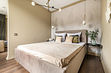 Говоря о плюсах квартиры, в самую первую очередь стоит отметить акт внушительного метража, дополненного грамотным зонированием пространства. Эта квартира действительно удобна для жизни и отдыха. Выделена изолированная спальная комната, гостиная совмещена с кухней. Обособленно выделена гардеробная зона, где можно хранить не только личные вещи, но и бытовой инвентарь. Есть открытый балкон, который используется как зона отдыха на свежем воздухе.
