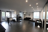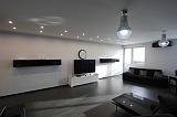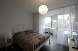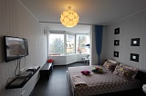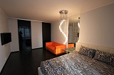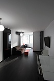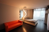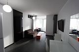 Второе достоинство – шикарный ремонт. Интерьер квартиры выполнен в очень современном стиле, который сочетает в себе элементы конструктивизма, ар-деко, неоклассики, хай-тека и минимализма. Все оформление квартиры достаточно светлое, полностью отсутствуют лишние элементы, которые загромождают пространство. Немаловажно, что квартира оборудована мебелью и бытовой техникой.