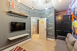 Предлагаем Вашему внимаю большую дизайнерскую квартира с 4-мя раздельными спальными комнатами. Квартира очень просторная и грамотно распланирована: большая площадь выделена под гостиную комнату совмещенную с кухонной и столовой зонами. Четыре спальные комнаты: одна хозяйская с собственной гардеробной комнатой, вторая детская с выходом на балкон, третья и четвертая тоже детские/гостевые комнаты. Так же имеется два санузла, один с душевой, а второй с ванной. Отдельная комната отведена под общий гардероб. Просторный застекленный балкон при желании можно оборудовать под кабинет. Квартира полностью обставлена и укомплектована всей необходимой мебелью, техникой и фурнитурой - для комфортного проживания.