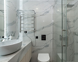 В номере высокие потолки, достигающие 2.7 метров, что создает ощущение простора и свободы. Коммуникации включают в себя газ, отопление от котельной, электричество, центральную канализацию и водоснабжение. Это обеспечивает комфортное проживание в любое время года.