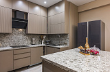 В квартире выполнен новый ремонт, который может похвастаться не только визуальной эстетикой, но и действительно высоким качеством своего исполнения. Основа оформления – элегантная современная классика. Жемчужно-кофейная палитра красок, которой отведена особая роль в интерьере, наполняет пространство особым уютом и шиком. Здесь действительно стоит побывать лично, чтобы в самой полной мере насладиться царящей внутри атмосферой и оценить все плюсы квартиры.