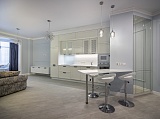 Примечательно, что в квартире установлен только самый необходимый минимум мебели – это не только делает ее более просторной, но и удобной в бытовом плане, ликвидирует весь визуальный шум.