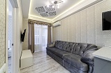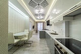Просмотрев фотографии квартиры, вы также можете отметить для себя факт стильного дизайнерского ремонта, выполненного с использованием дорогостоящих и высококачественных материалов. Данный аспект, к слову, только подчёркивает престижный статус предложения.