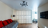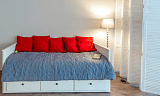 Внутреннее пространство поделено на просторную изолированную спальню и гостиную, совмещенную вместе с кухней. Выполнен новый ремонт, отличающийся качеством и эстетикой. В основе оформления пространства – современный скандинавский стиль, отличающийся лаконичностью и высокой функциональностью. Мебель и техника – все подобрано в соответствии с общей стилистикой.