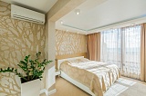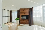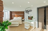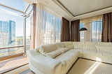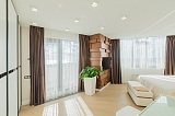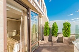 Пентхаус дизайнер распланировал в две освещённые естественным светом спальни, кухню-гостиную и гардеробную зону. По всему периметру квартиры - терраса с уникальными видовыми характеристиками на исторический центр Сочи и Черноморское побережье.