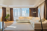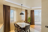 Дизайн квартиры выполнен в современном стиле: из материалов ремонта можно отметить высококачественные материалы, выполненные на заказ в эксклюзивном формате.