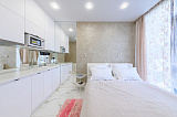 Уважаемые клиенты, предлагаем Вашему вниманию эксклюзивную студию с дизайнерским ремонтом в цетре Сочи, данное предложение выгодно выделяется по таким критериям как: