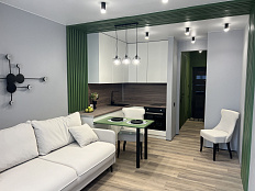 Преимущества квартиры: Новый, стильный ремонт, никто не жил в квартире. Качественная ортопедическая мягкая мебель MOON. Встроенная бытовая техника Zigmund and Shtain, Weissgauff. Высокий этаж с видом на благоустроенный двор и на зелень. Возможность выделить спальную зону.