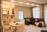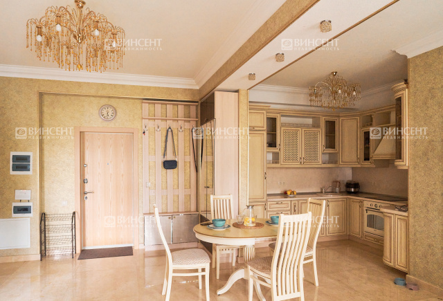 Площадь грамотно распланирована: две светлые спальни, кухня-гостиная с изысканным классическим интерьером, просторный холл и санузел. В отделке использованы качественные материалы, мебель и техника остаются новым владельцам — всё готово для комфортной жизни. Тёплая цветовая гамма, благородные текстуры и утончённый декор создают атмосферу респектабельного уюта.