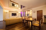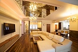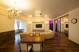 Площадь квартиры, предлагаемой Вашему вниманию, составляет 155 квадратных метров. Три просторные непроходные спальни, кухня, как и в большинстве новых домов, объединена с гостиной комнатой, два санузла. Отдельного внимания заслуживает потрясающий авторский ремонт. Без лишней скромности отметим, что буквально каждая деталь этой квартиры ненавязчиво подчеркивает неповторимое чувство вкуса своих хозяев. Все здесь пропитано атмосферой роскоши и изысканности. Дорогая итальянская мебель: «TONIN CASA», «SIGNORINI & COCO», «REDAELLI IVANO». Испанская сантехника всемирной известной марки «GALA». Кухонный гарнитур «ARRITAL CUCINE».