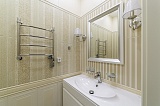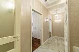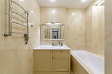 Интерьер представленной квартиры оформлен в светлой цветовой палитре: от благородно-бежевого до шоколадного. Установленная внутри мебель идеально вписывается в общую стилистику пространства. Большую долю внимания дизайнеры уделили подбору текстиля, декора. Отметим и то, что квартира полностью оборудована новой бытовой техникой. Смело можно звать друзей на новоселье сразу после покупки. Дополнительных вложений не требуется!
