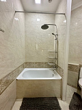 Просмотрев фотографии квартиры, вы можете обратить внимание на факт эстетичного нового ремонта, выполненного внутри. Все комнаты тут полностью оснащены мебелью и бытовой техникой. Есть системы кондиционирования воздуха. Интерьер оформлен в классическом стиле.