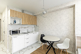 Квартира-студия с светлой отделкой обладает