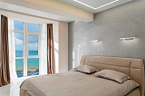 Просторная спальня с Панорамными окнами и бескрайним видом на море сделает каждое Ваше утро незабываемым.