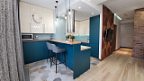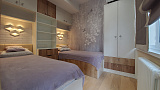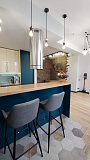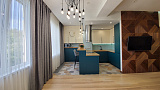 В квартире исполнен качественный и эргономичный ремонт, продуманна каждая мелочь от натуральных напольных покрытий до электропривода штор. Полноценные две спальни оборудованные грамотными системами хранения, просторная зона гостевой и кухни.