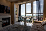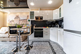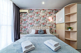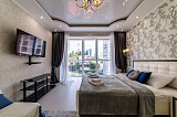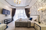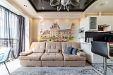 Квартира выполнена в современном стиле с качественным ремонтом и готова к проживанию. Дизайн интерьера объединяет элегантность и функциональность, обеспечивая уютную обстановку для отдыха и повседневной жизни. В ней есть вся необходимая мебель, кондиционеры, высокоскоростной интернет и кабельное телевидение.