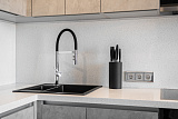Площадь данной квартиры – 47 м2. Пространство внутри распланировано на изолированную спальную комнату и гостиную, объединенную вместе с кухней. Обособленно выделена гардеробная комната, просторная прихожая зона и открытый балкон с очень приятным видом.