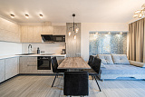 Готовность квартиры для жизни – 100%. Внутри выполнен дорогостоящий ремонт, есть вся необходимая мебель, техника и климатическое оборудование. Стильный интерьер – это отдельный плюс. Здесь действительно приятно находиться. Впрочем, это только лишний повод для того, чтобы посетить квартиру вместе с экспертами нашей компании.