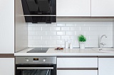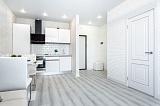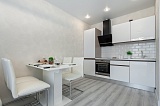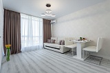 Ремонт в классическом современном стиле подчеркивает тягу заказчиков к прекрасному. Главная роль отведена светлой палитре, которая визуально расширяет пространство, наполняет его неповторимым уютом, светом и теплотой. Установленная мебель и ряд элементов декора отлично дополняют общую картину, делают пространство более целостным и гармоничным. Бытовая техника производства всемирно известных брендов, которые у всех на слуху, встроенный холодильник.