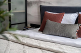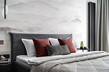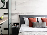 * Спальное место изолировано раздвижной перегородкой из матового стекла, обеспечивающей приватность и наполняющей помещение светом.