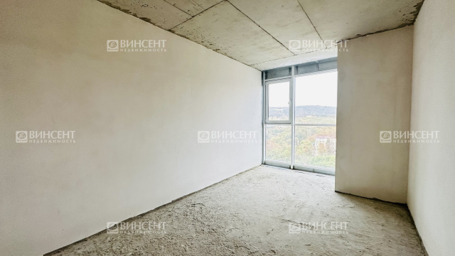 Площадь студии – 24 м2. Отсутствие финишной отделки внутри позволяет покупателям самостоятельно продумать и план зонирования, и стилистическую концепцию будущего интерьера. Обособлено выделена прихожая зона, есть достаточно просторный открытый балкон, где в перспективе можно сделать зону для отдыха. Из окон открывается приятный вид на горы и на двор дома.