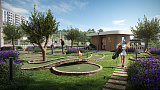 Концепция проекта предполагает расположение всех необходимых объектов на территории комплекса, что избавляет жильцов от необходимости покидать его пределы для удовлетворения своих потребностей.