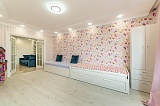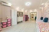 Общая площадь – 114 квадратных метров. Внутри выделена спальная комната хозяев квартиры, детская, просторная гостиная, совмещенная с кухонной зоной, просторная прихожая комната. Санузел в квартире раздельный.