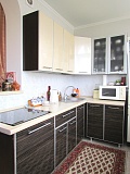 Квартира расположена на одиннадцатом этаже новостройки. Площадь – 57 квадратных метров, из них : спальная комната – 19м2, гостиная – 15м2, кухня и прихожая по 8м2. Все комнаты непроходные. Санузел раздельный. Стены комнат оклеены однотонными обоями спокойных цветов, натяжные потолки, на полу - светлая паркетная доска. Полная укомплектовка новой деревянной мебелью и бытовой техникой. В комнате и на кухне установлены современные кондиционеры, есть холодильник, микроволновая печь, два телевизора.