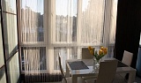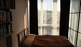 Натяжные потолки, встроенные гардеробные секции Elfa, раздвижные двери, теплые полы по всей квартире, высокопрочный бельгийский ламинат, сплит-система Mitsubishi.