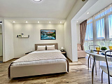 В центре Сочи, на улице Виноградной, выставлена на продажу изящная однокомнатная квартира в престижном доме бизнес-класса. Удобное местоположение дарит исключительные перспективы для проживания – вид из окон захватывает городскую панораму, а парк "Ривьера" и вся нужная среда обитания находятся совсем рядом.