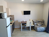 Апартамент, площадью 30м2, распланирован в широкоформатную студию, в которой оборудовано 4 спальных места, кухонная зона, гардеробная и совмещенный санузел. Также огромным преимуществом является большой балкон с выделенной зоной для отдыха, в которой можно насладить видом на море и закат солнца с чашечкой ароматного кофе или бокалом вина. Все отделочные материалы в помещении только от известных производителей, что гарантирует качество ремонта и комфортное проживание в любое время года. Апартамент полностью готов для проживания или сдачи в аренду.