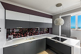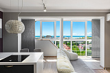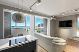 Площадь квартиры составляет ровно 100 квадратных метров. Внутри выделено 2 непроходные спальные комнаты, просторная гостиная, объединенная с кухней. Все комнаты отличаются тщательно продуманным зонированием. Еще одна черта, которая характерна для всех помещений – прекрасный вид на море и яхтенную марину.